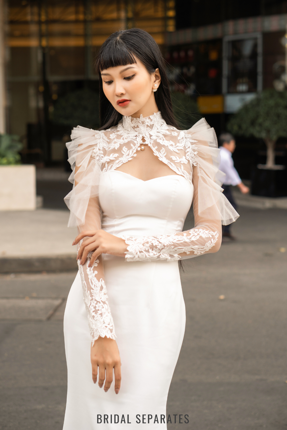 In BRIDAL SEPARATES, you find meticulously designed, cared for, delicate, and luxurious bridal accessories such as veils, trains, bridal cover-ups...
