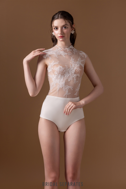 High Neckline Bridal Bodysuit with Couture Lace / "Eulalie"