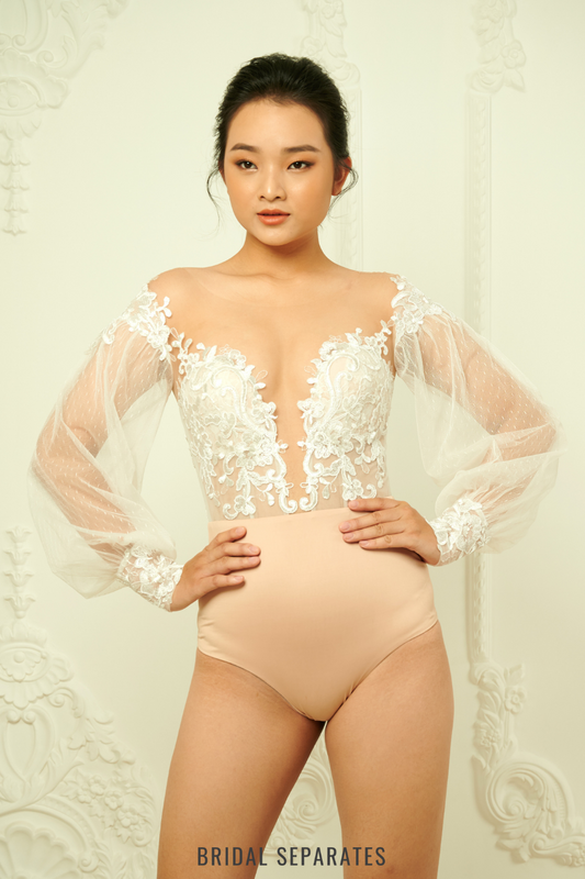 Long Sleeves Bridal Bodysuit with Lace / "Helene"