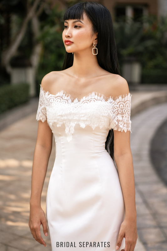 Short Bridal Cape with Floral Lace / "Ottilie"
