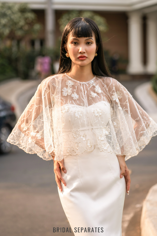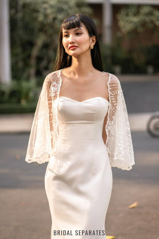 Bridal Cape with Couture Printed Glitter Lace / "Rose"