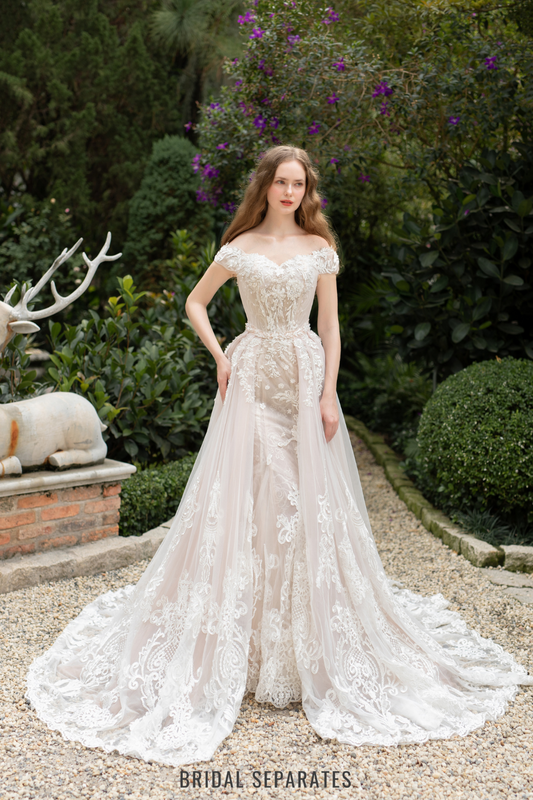 Lace Wedding Dress with Detachable Overskirt / "Lorena"