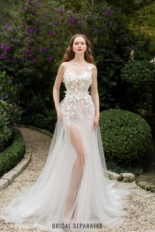 High Slit Wedding Dress with Detachable Sleeves / "Martina"