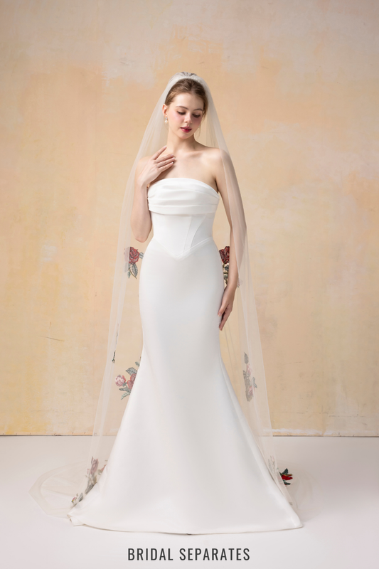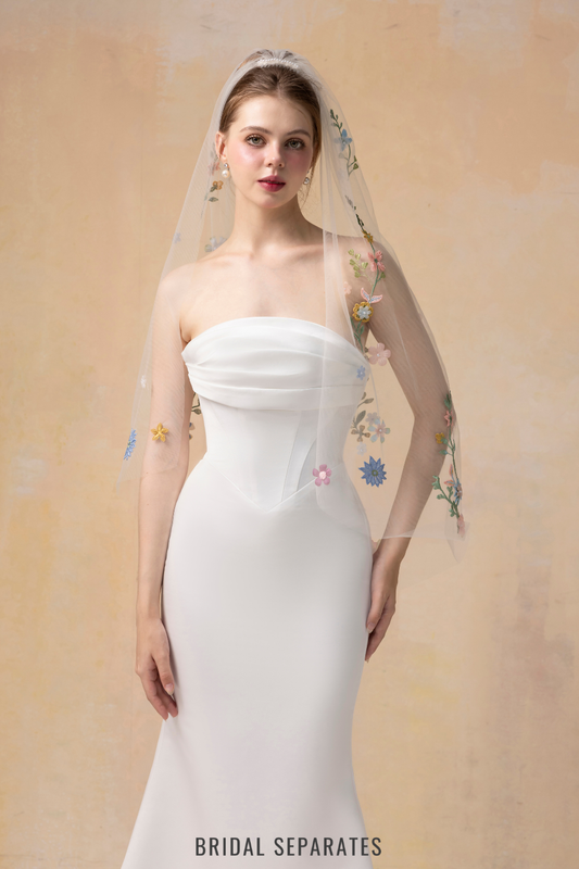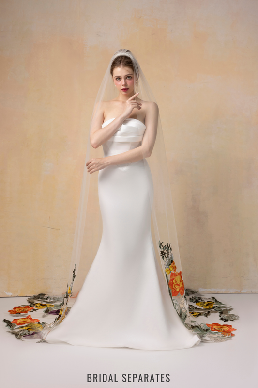 Handmade Flowers Fingertip Veil/ "Angeletta"