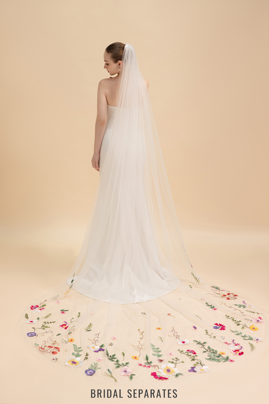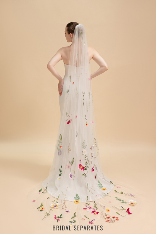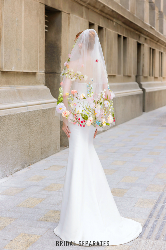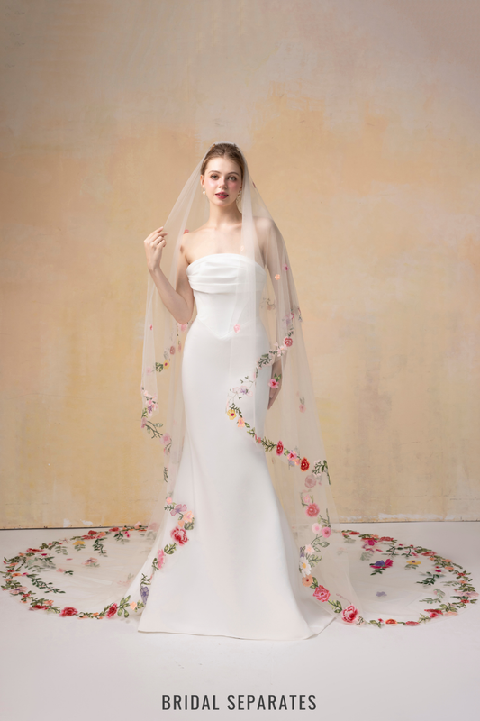Handmade 3D Floral and Ribbon Fingertip Veil / "Esme"