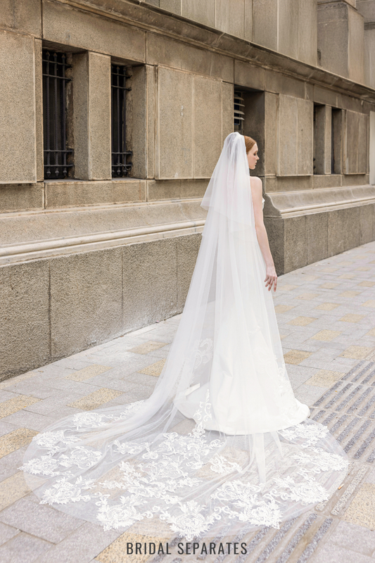 Spring Bridal Veil with Handmade 3D Floral Lace / "Sophie"