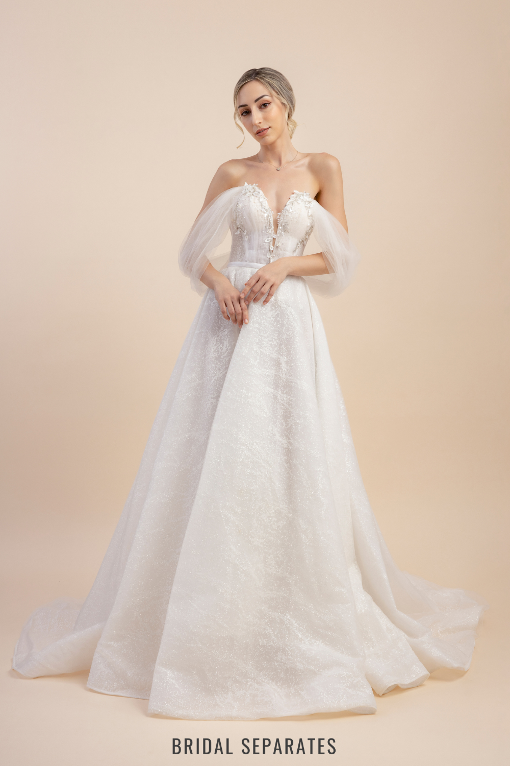 A-Line Wedding Dress with Off Shoulder Sleeves / "Anna"
