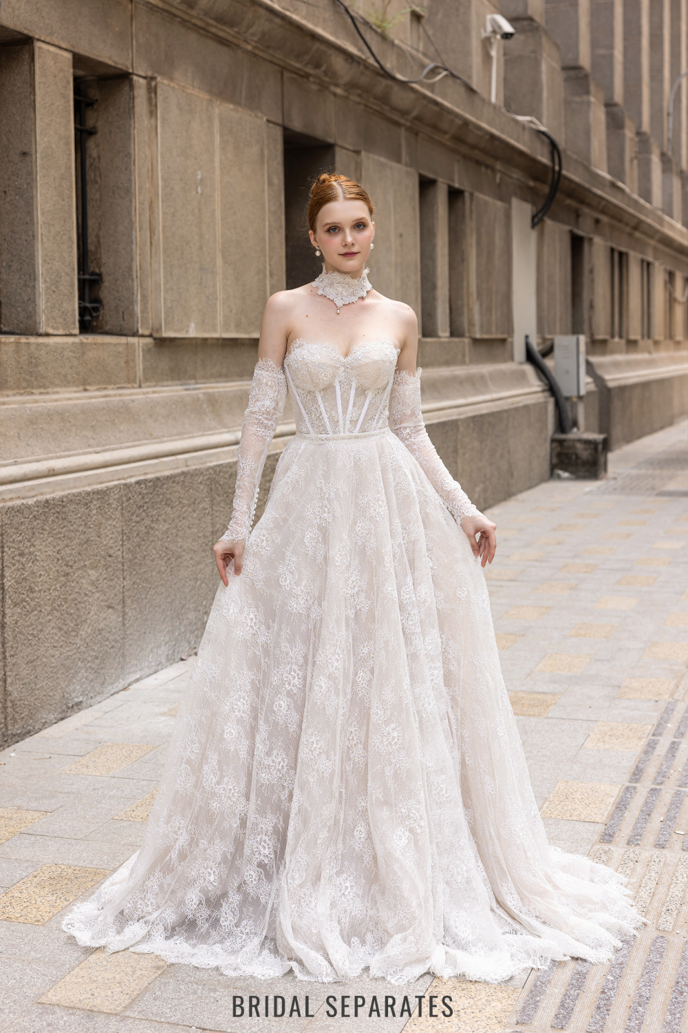 Detachable Bridal Skirt with French Lace / "Chloé"