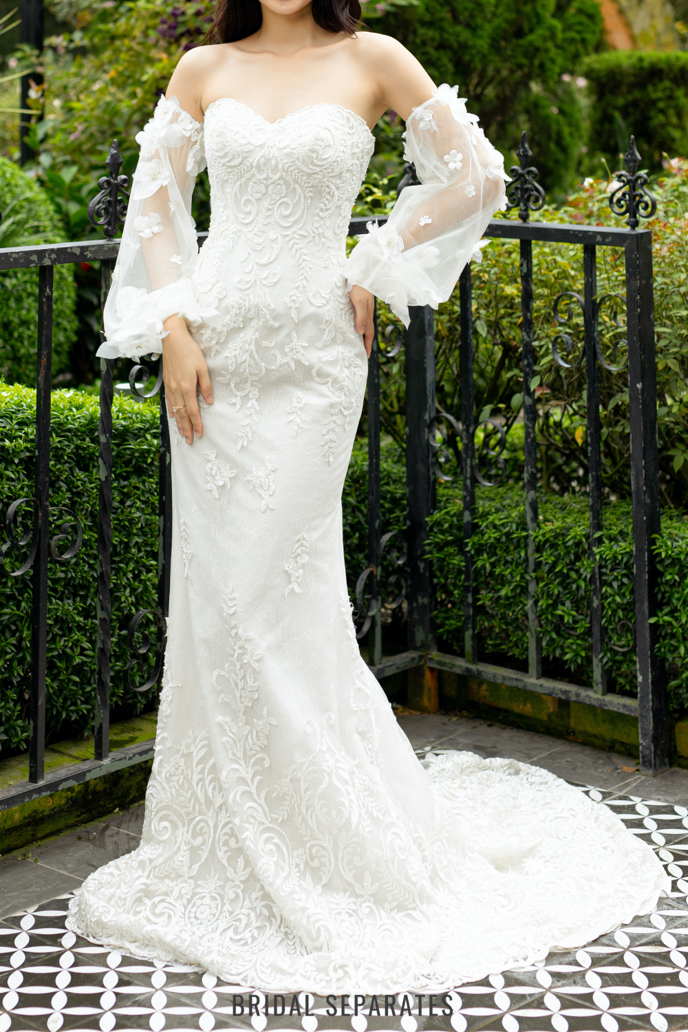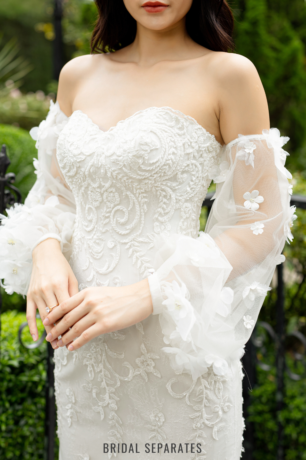Detachable Sleeves with 3D Floral Lace / "Esther"