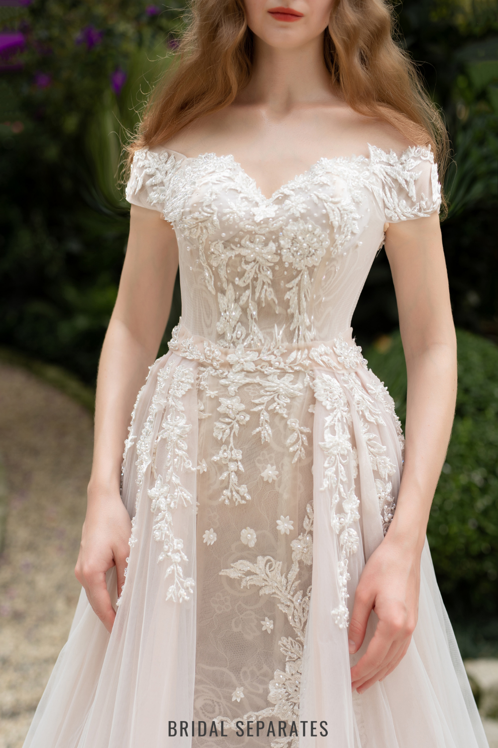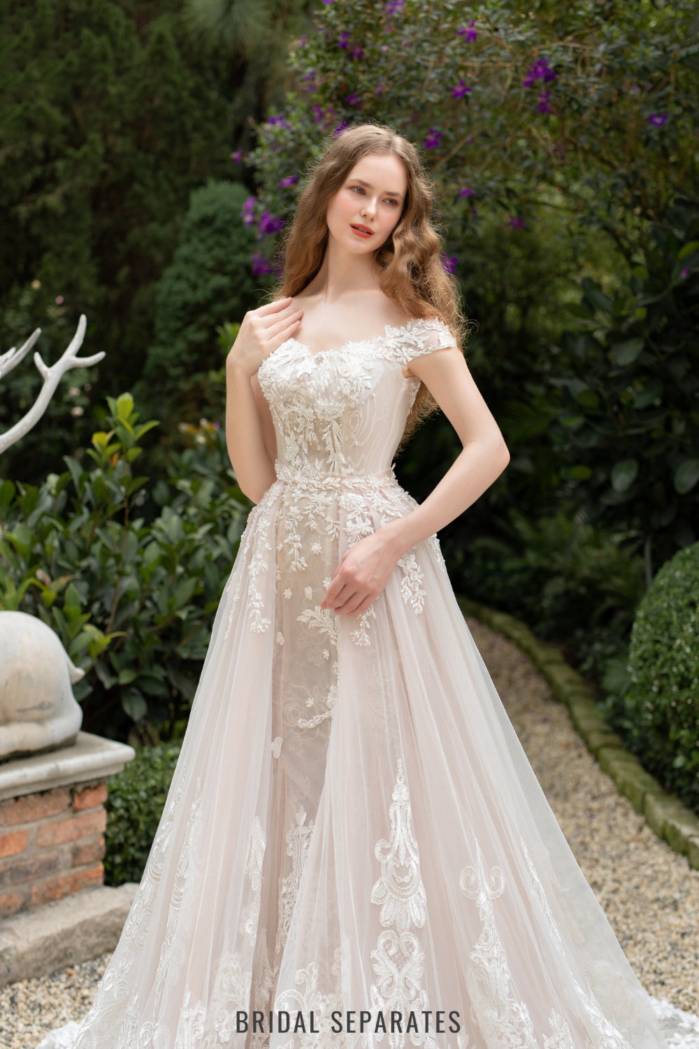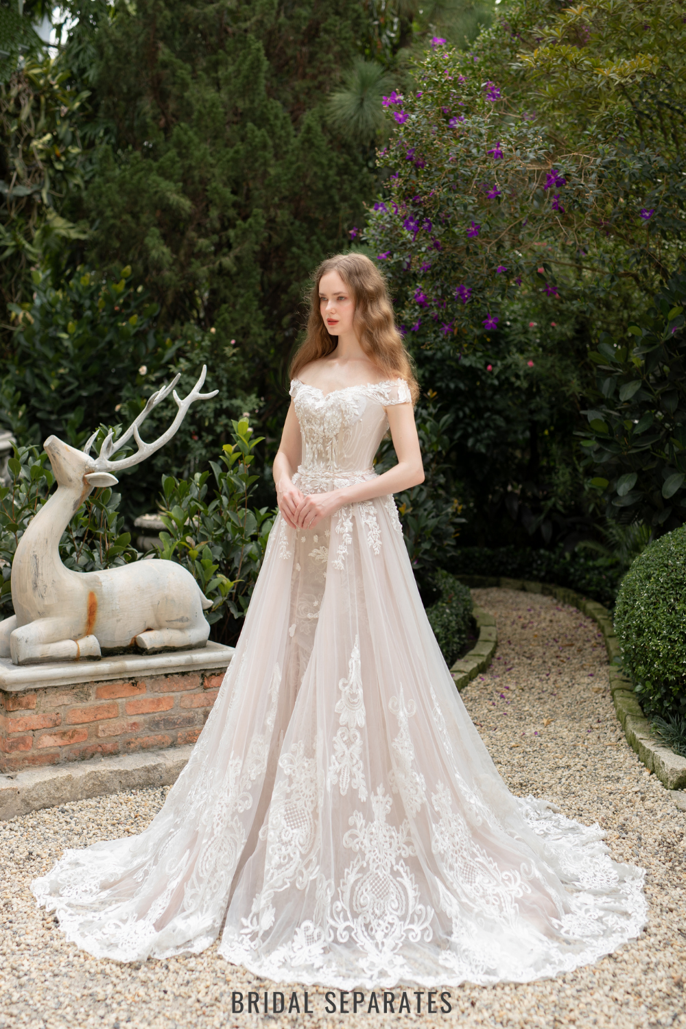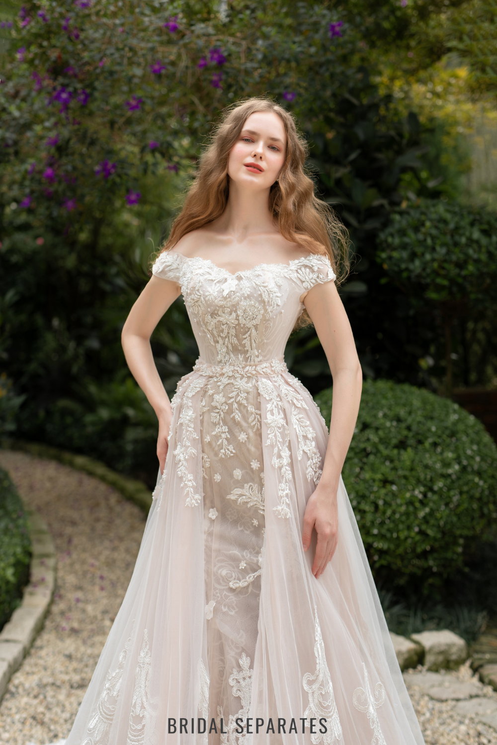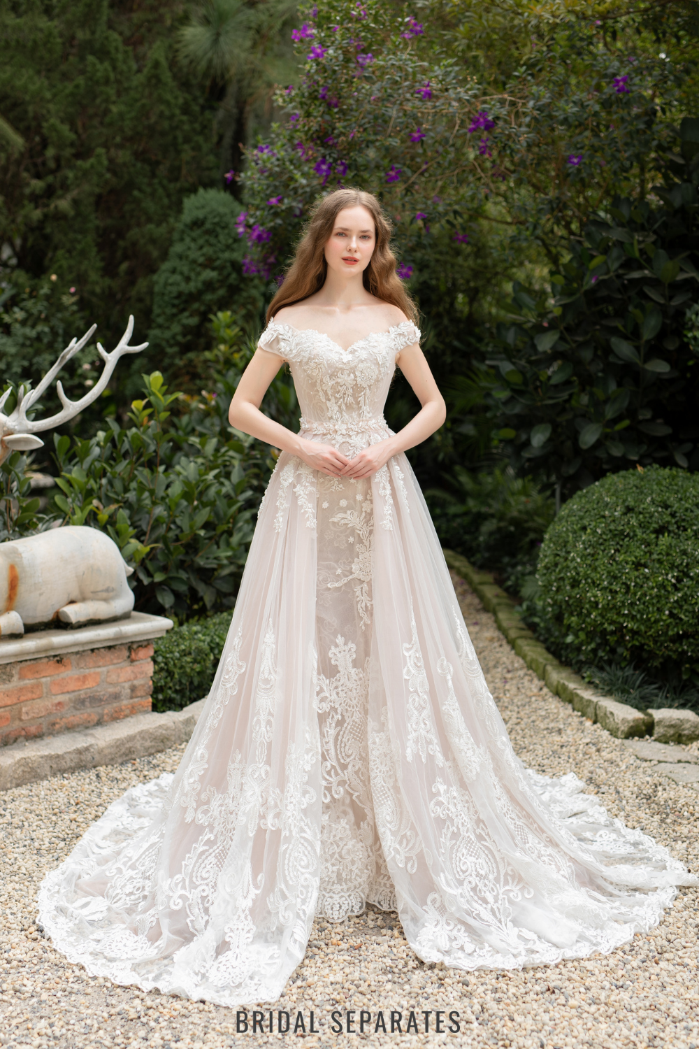 Lace Wedding Dress with Detachable Overskirt / "Lorena"