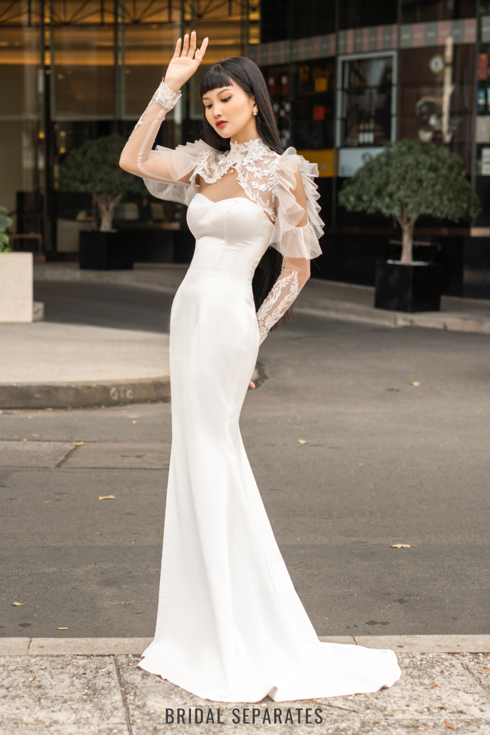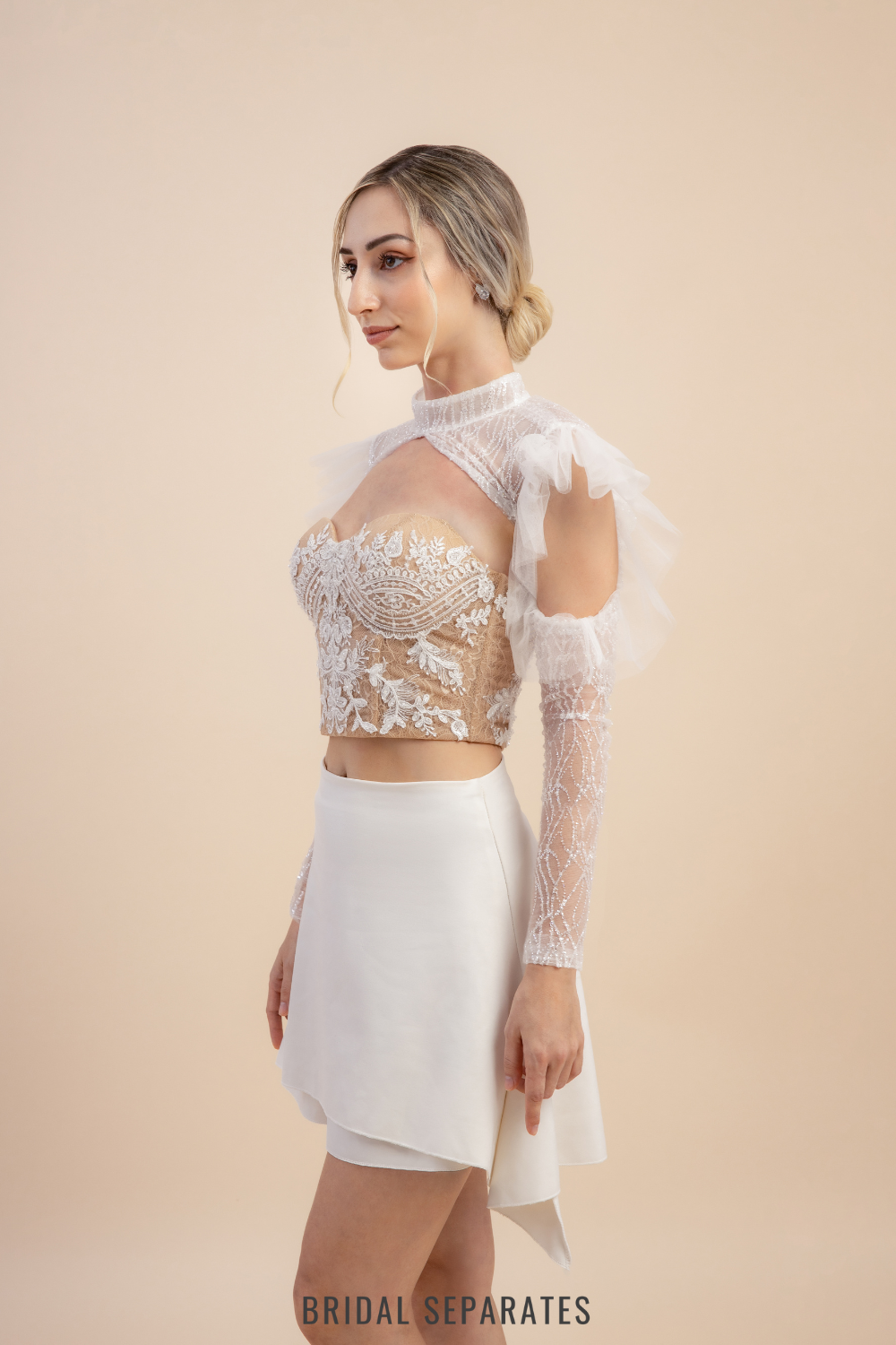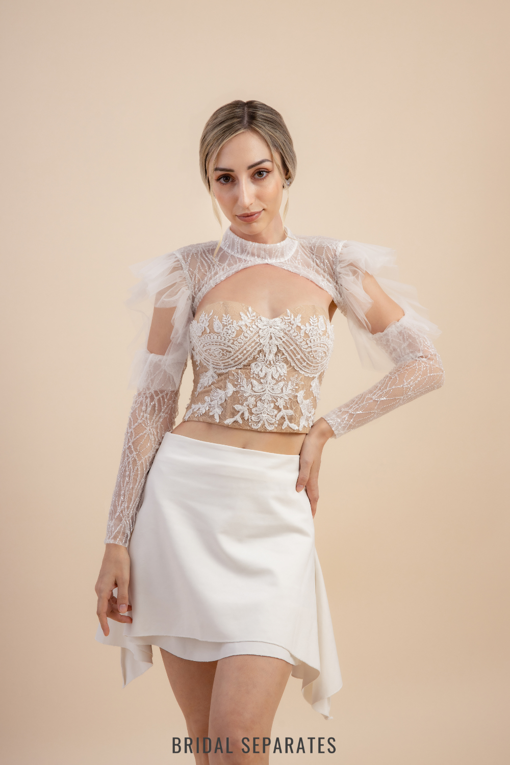 Long Sleeves Bridal Bolero with Glittered Tulle / "Elysia"