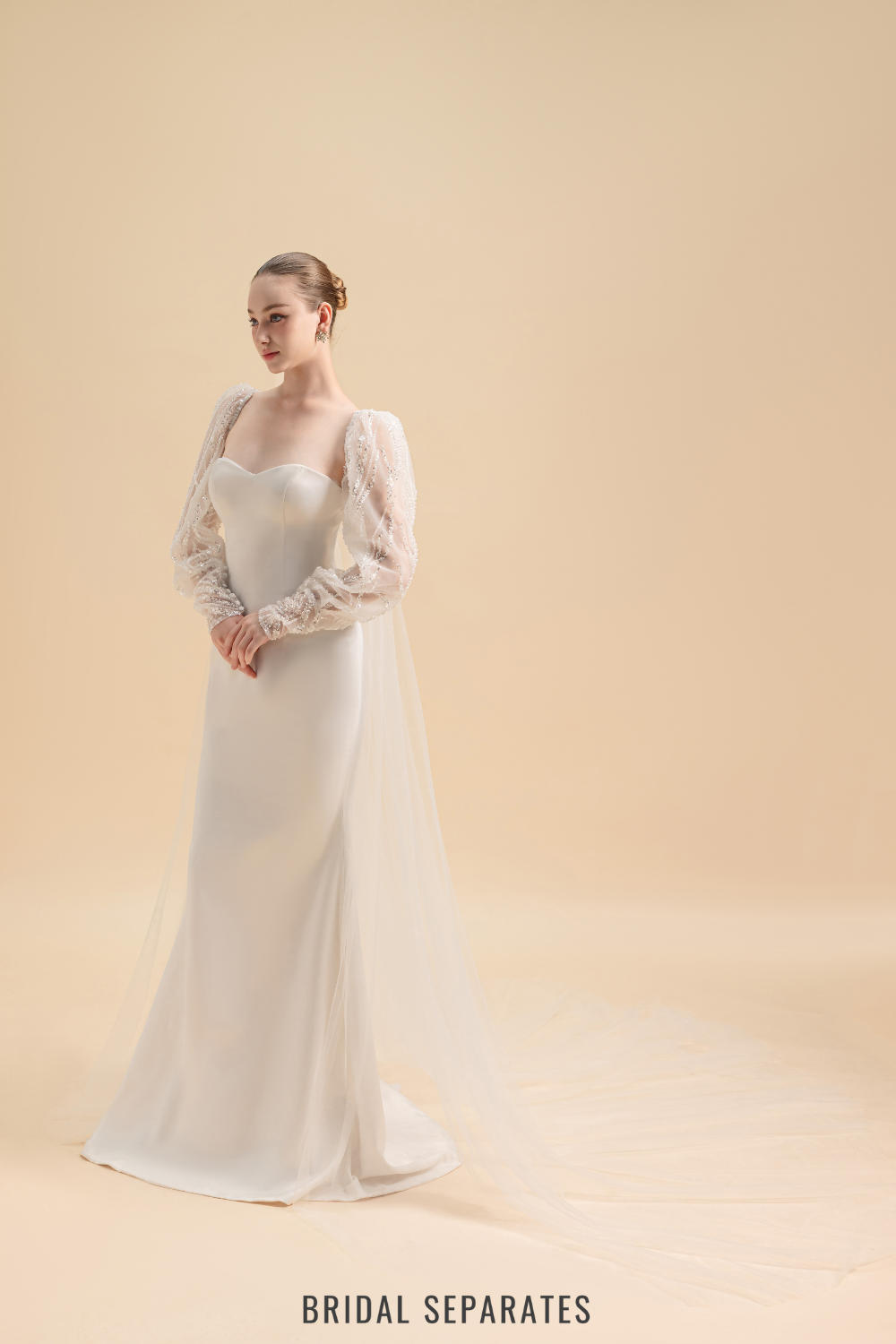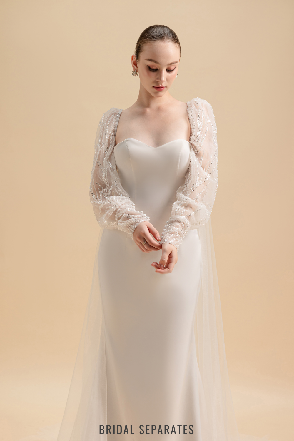 Long Sleeves Bridal Cape Veil / "Nalini"