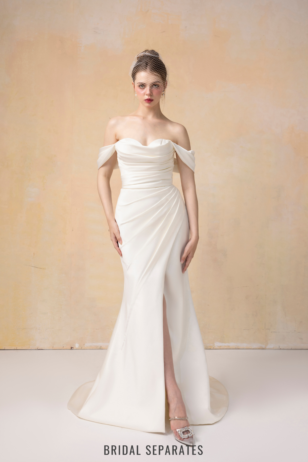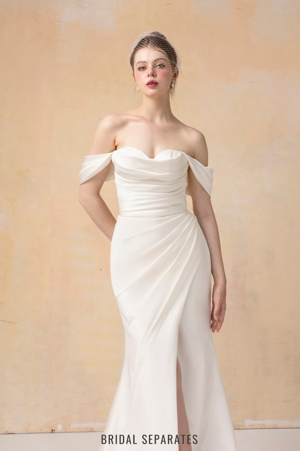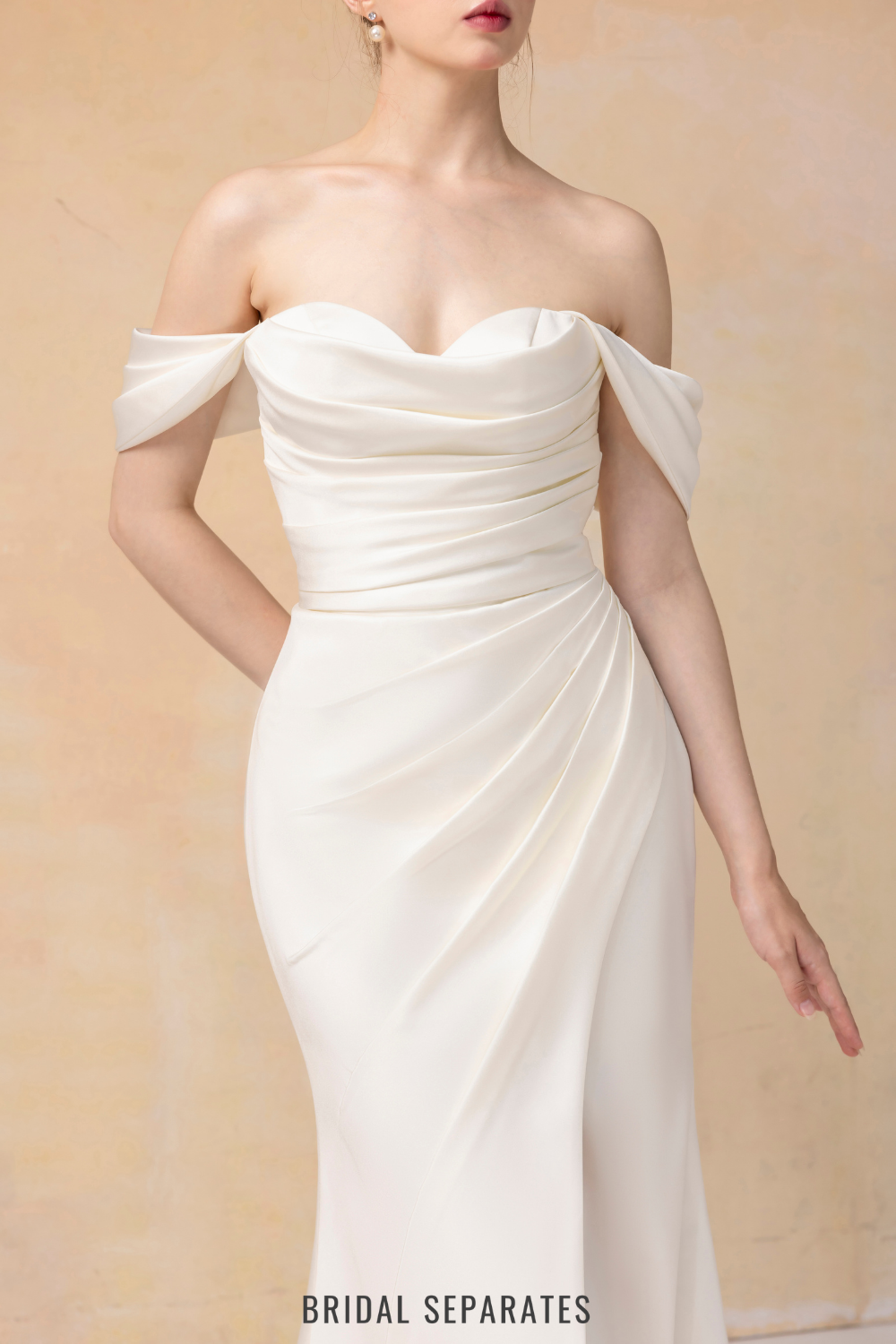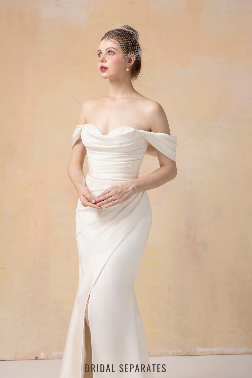 Off Shoulder Mermaid Wedding Dress with Detachable Train / "Jeannine"