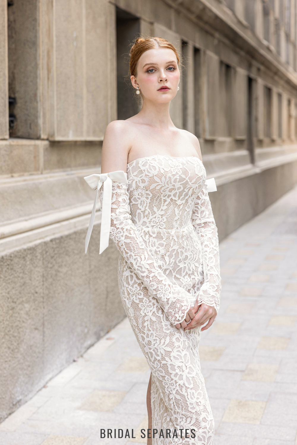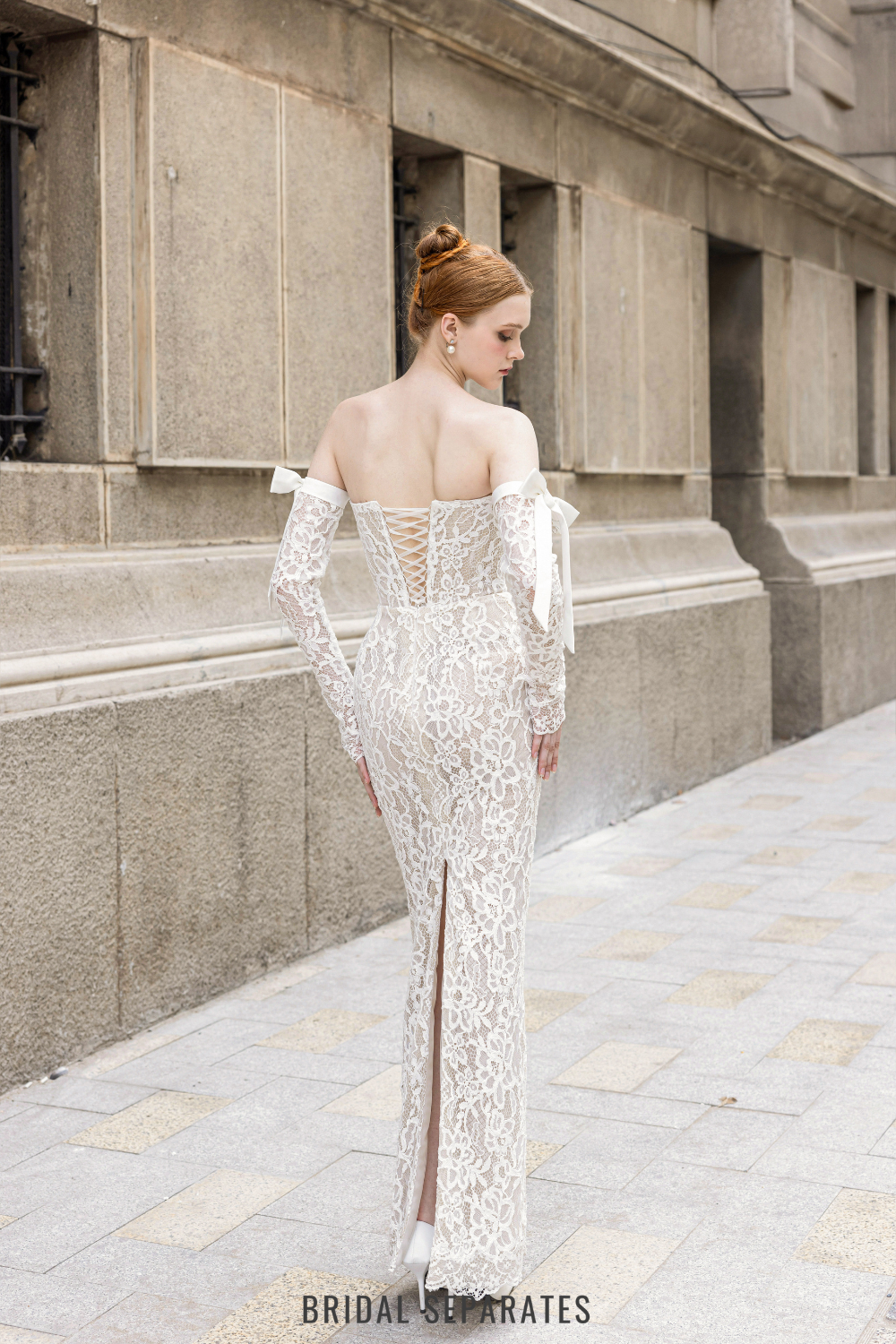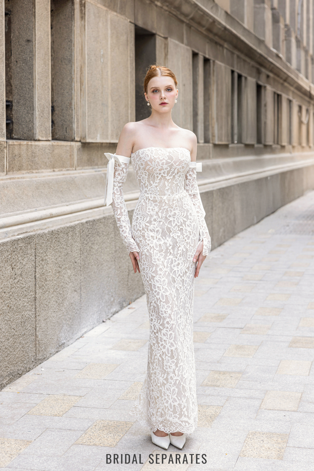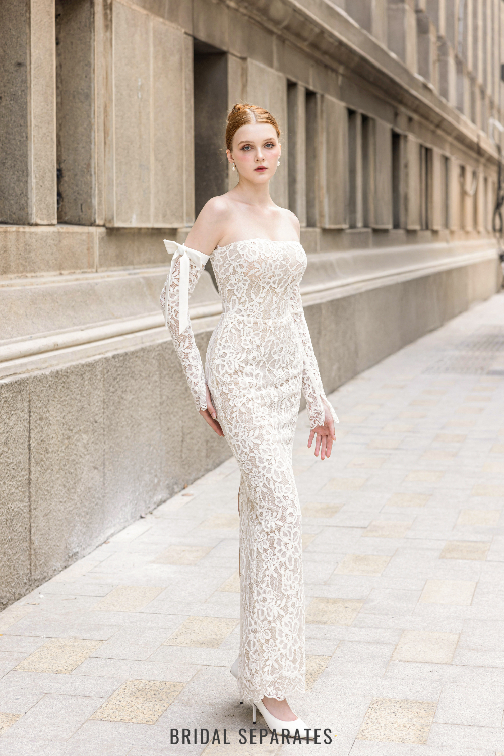 Sheath Wedding Dress with Detachable Sleeves / "Lyly"