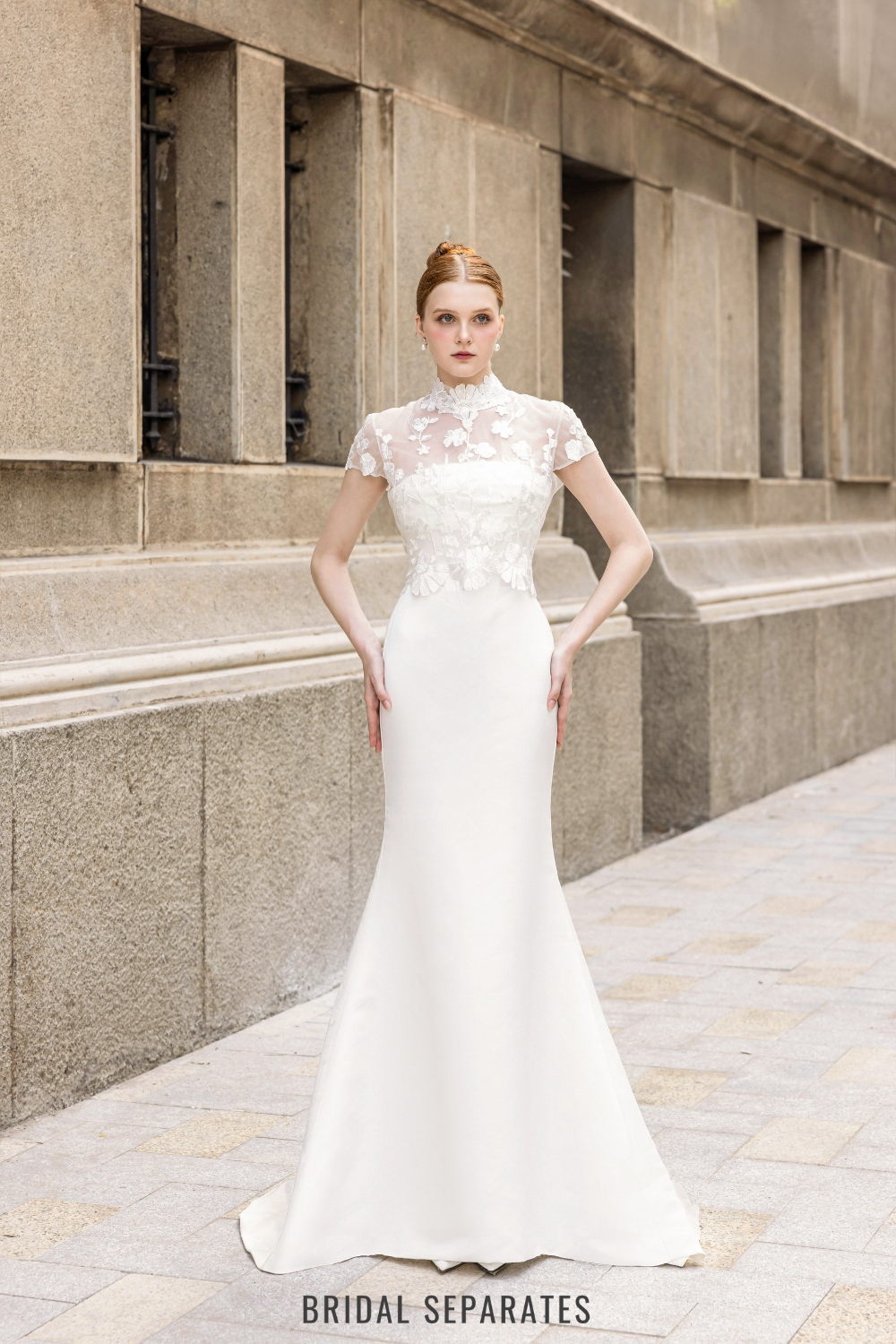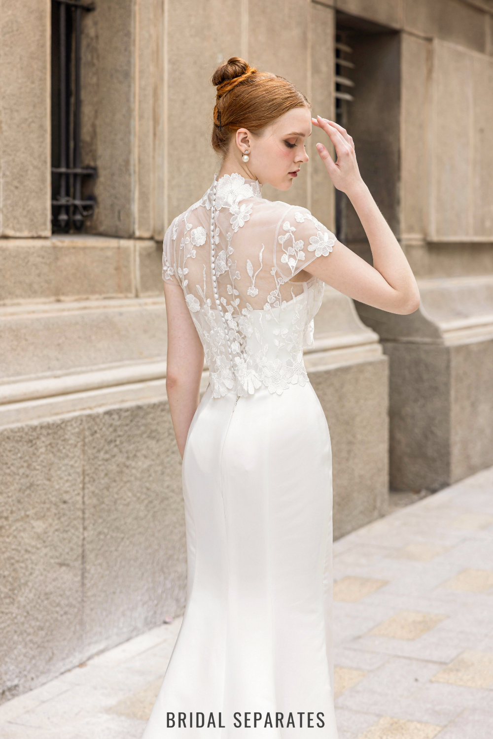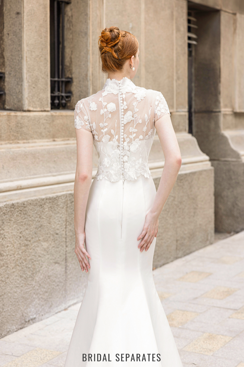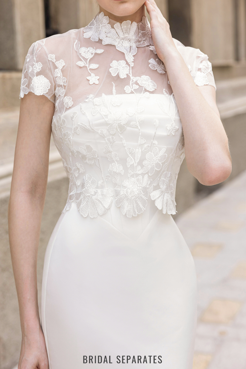Short Bridal Cape with Floral Lace / "Ottilie"